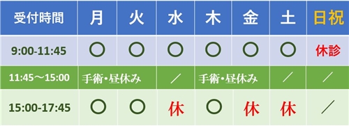 手術が混んで1-2週間お待たせすることがありますので余裕をもって予約を入れてください。